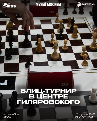 25 января в 12:00 64 клетки и Rep Chess проводят открытый рапид-турнир в Центре Гиляровского с обсчетом рейтингов ФШР и РШТ.