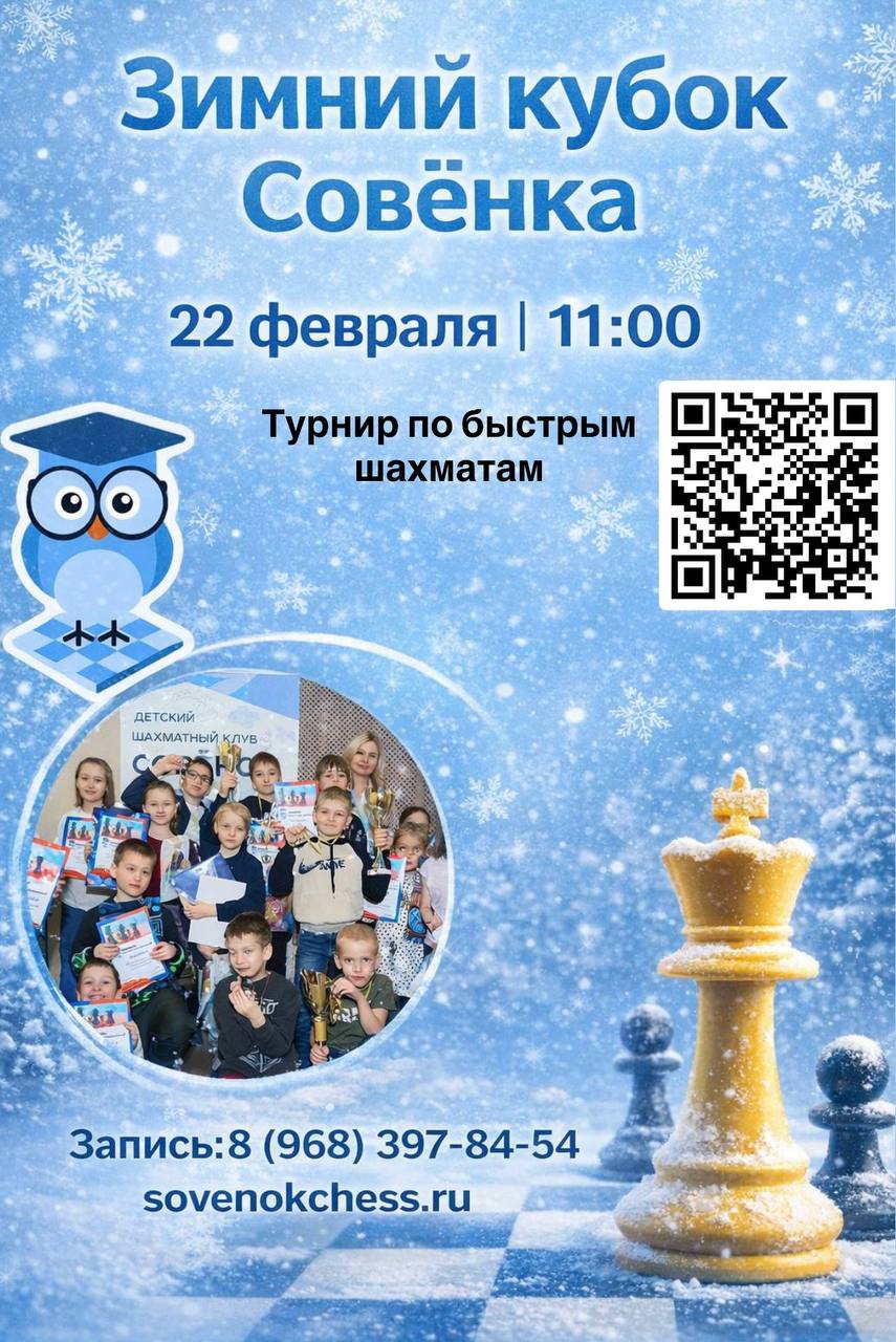 Дорогие родители! ✨ Рады сообщить, что в феврале в нашем центре "Развиватория" (м. Коммунарка )турнир по быстрым шахматам "Ход конём" ♟