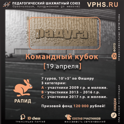 Командный кубок по быстрым шахматам с призовым фондом 120000 рублей.
