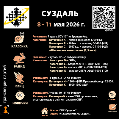 8 - 11 МАЯ ПШС приглашает Вас на шахматные турнир СУЗДАЛЬ!