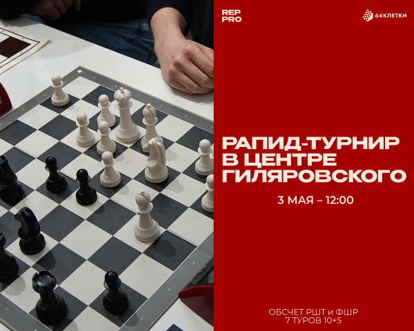 Во вторник, 28 апреля, 64 Клетки и Rep Chess проводят открытый блиц-турнир.