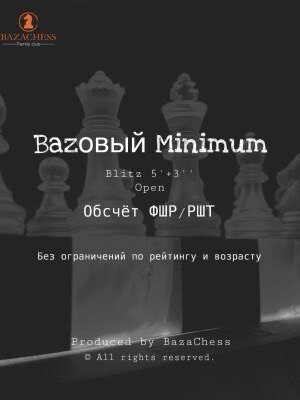 🕚 Регламент: Контроль 5'+3", количество туров 7 (до 16 чел.), 8 (до 32 чел.), 9 (32+ чел.)