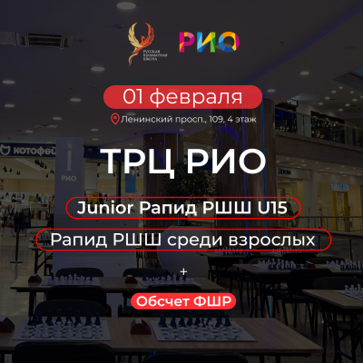 1 февраля в 12:00 64 клетки и Rep Chess проводят открытый рапид-турнир в Центре Гиляровского с обсчетом рейтингов ФШР и РШТ.