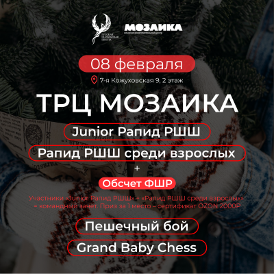 6 - 8 ФЕВРАЛЯ ПШС приглашает Вас на шахматные турниры в МФК “Кунцево Плаза”!