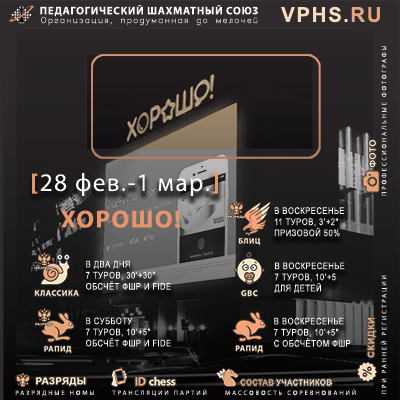 28 ФЕВРАЛЯ - 1 МАРТА ПШС приглашает Вас на шахматные турнир Хорошо!