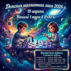 19 апреля 2026 года ♟️✨ Космическое объявление! Детская шахматная лига 2026 ✨