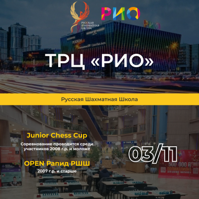 03 ноября в 11:00 Русская шахматная школа проводит турниры в ТРЦ "РИО"!