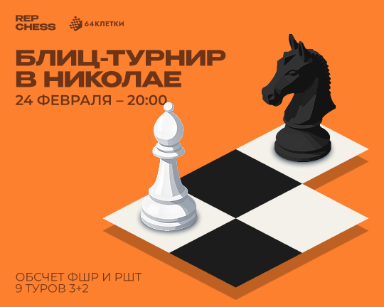 Во вторник, 24 февраля, 64 Клетки и Rep Chess проводят открытый блиц-турнир.