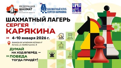 Приглашаем в шахматный лагерь С.А. Карякина, который будет проходить с 4 по 10 января в Казахстане!
