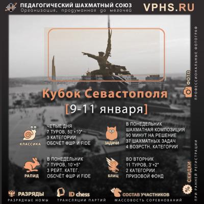 9, 10 и 11 января ПШС приглашает шахматистов принять участие в турнире "Кубок Севастополя"!