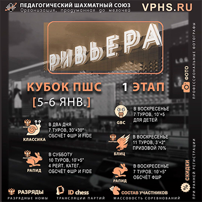 5 и 6 января ПШС приглашает шахматистов принять участие в первом этапе турнира Кубка ПШС!
