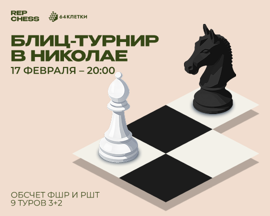 Во вторник, 17 февраля, 64 Клетки и Rep Chess проводят открытый блиц-турнир.