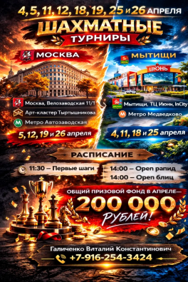 ФШМ - МСОО Федерация шахмат г.о. Мытищи приглашает на регулярные бюджетные турниры