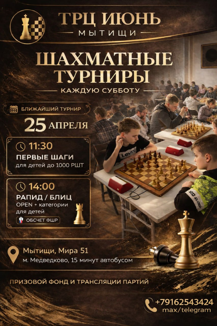 ФШМ - МСОО Федерация шахмат г.о. Мытищи приглашает на регулярные бюджетные турниры