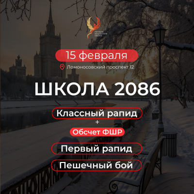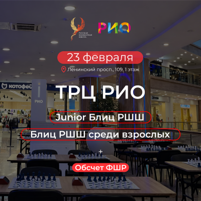 15 февраля (воскресенье) приглашаем детей и взрослых принять участие в Февральском Кубке по рапиду в ТРЦ Щёлковский