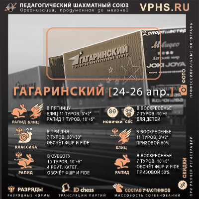 24 - 26 АПРЕЛЯ ПШС приглашает Вас на шахматные турнир ГАГАРИНСКИЙ!