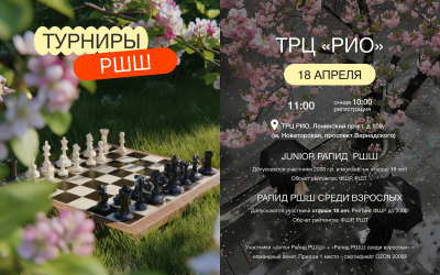 18 - 19 АПРЕЛЯ ПШС приглашает Вас на шахматные турниры в ТРЦ “Радуга”!