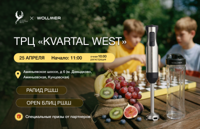 ВЫИГРАТЬ СТИЛЬНУЮ ТЕХНИКУ НА ТУРНИРАХ РШШ 25 АПРЕЛЯ - Русская шахматная школа и Wollmer снова объединились, а это значит - весеннему настроению быть!