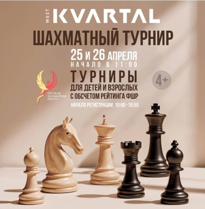 25 апреля (суббота) ШШ "Вертикаль" приглашает принять участие в турнире для начинающих по быстрым шахматам в уютной библиотеке им. Е.А.Фурцевой по адресу: Фрунзенская набережная 50.