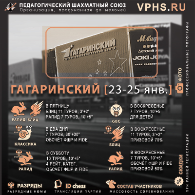 23-25 января ПШС приглашает шахматистов принять участие в турнире "Гагаринский"!