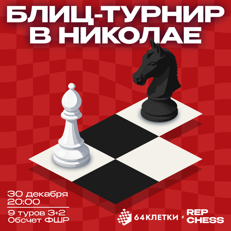 Во вторник, 30 декабря, 64 Клетки и Rep Chess проводят открытый блиц-турнир.