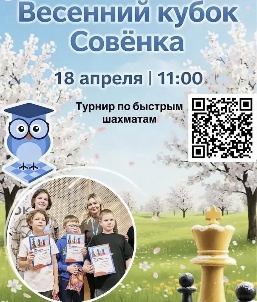 Приглашаем на детский турнир по быстрым шахматам «Весенний кубок Совёнка» с обсчётом рейтинга ФШР.