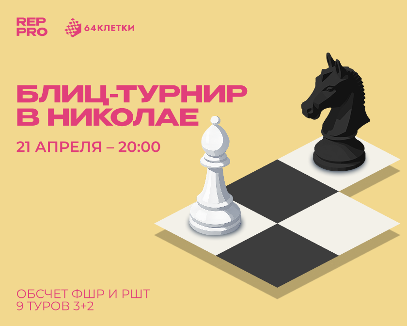 Во вторник, 21 апреля, 64 Клетки и Rep Chess проводят открытый блиц-турнир.