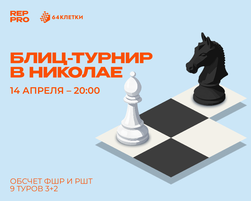 Во вторник, 14 апреля, 64 Клетки и Rep Chess проводят открытый блиц-турнир.