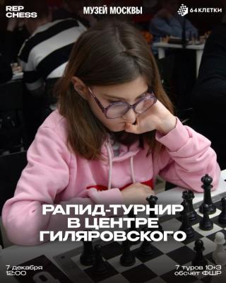 С 26 по 28 декабря приглашаем начинающих и PRO на детский турнир с классическим контролем времени с обсчетом ФШР. Играем в красивом и полностью обновленном после ремонта шахматном клубе с историей в самом центре Москвы. Взнос 2000 рублей за 3 игровых дня, многодетным дополнительная скидка 50%, то есть 1000 рублей за участника. Три рейтинговые категории, предусмотрены денежные призы! Количество мест ограничено - 60 человек