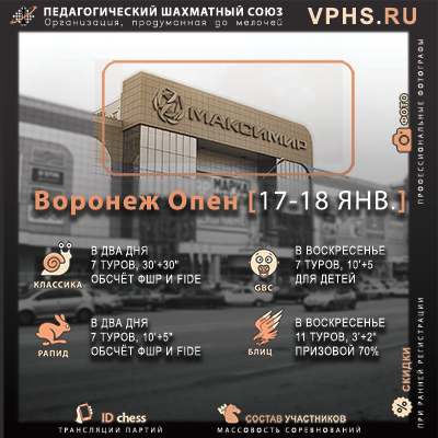 17 и 18 января ПШС приглашает шахматистов принять участие в турнире "Воронеж Опен"!