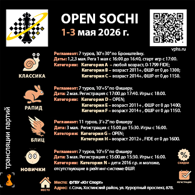 1 - 3 МАЯ ПШС приглашает Вас на шахматные турнир OPEN SOCHI!