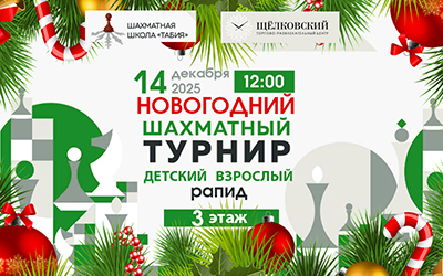 14 декабря (воскресенье) приглашаем детей и взрослых принять участие в Новогоднем Кубке по рапиду в ТРЦ Щёлковский