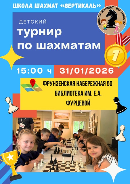 31 января (суббота) Шахматная Школа "Вертикаль" приглашает принять участие в турнире по быстрым шахматам.